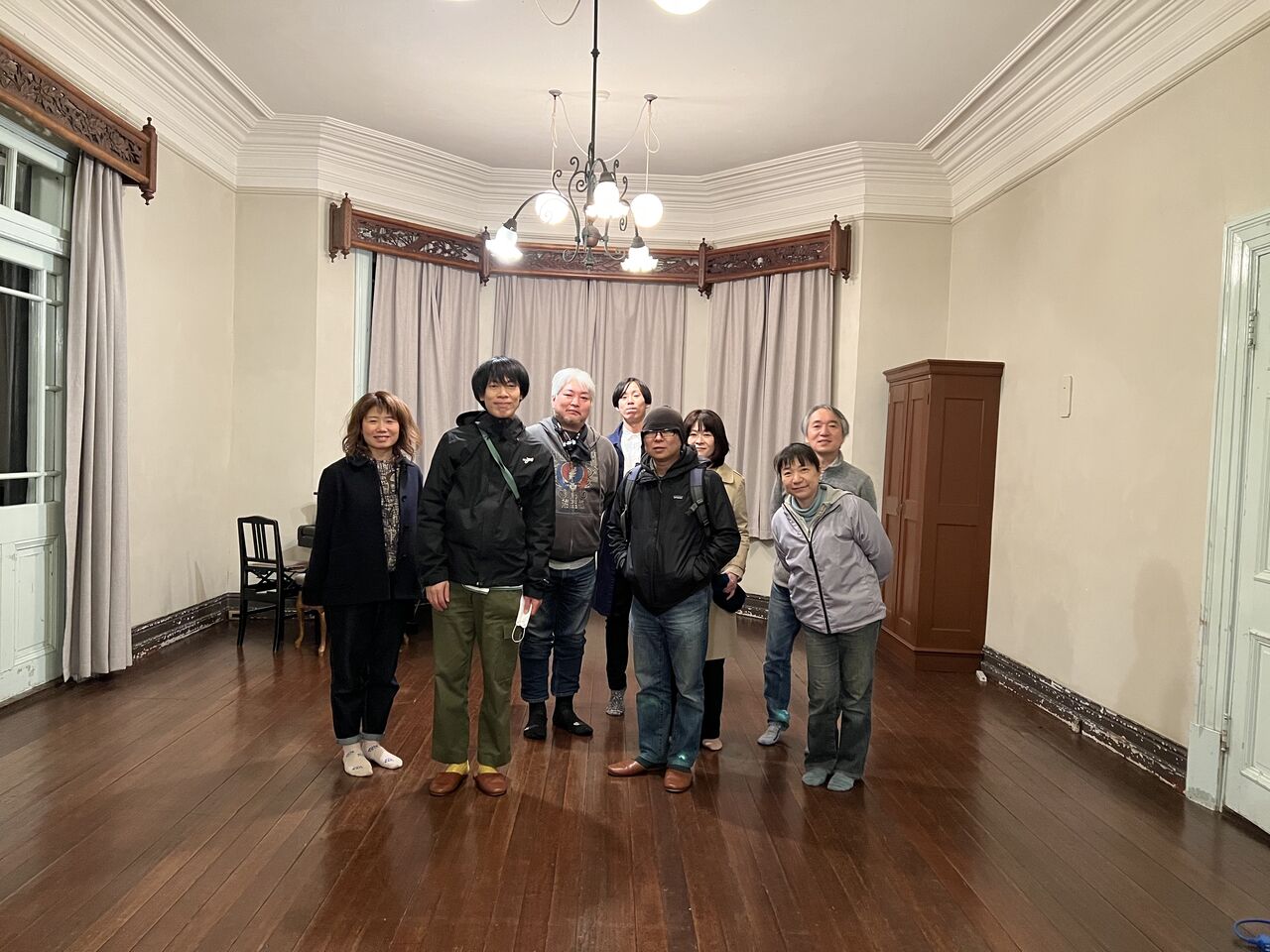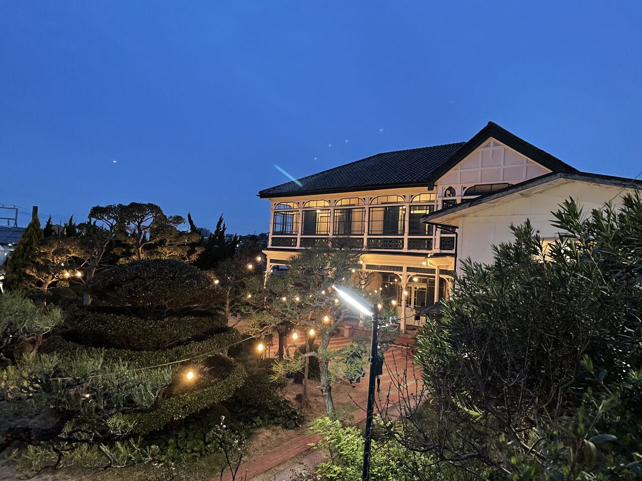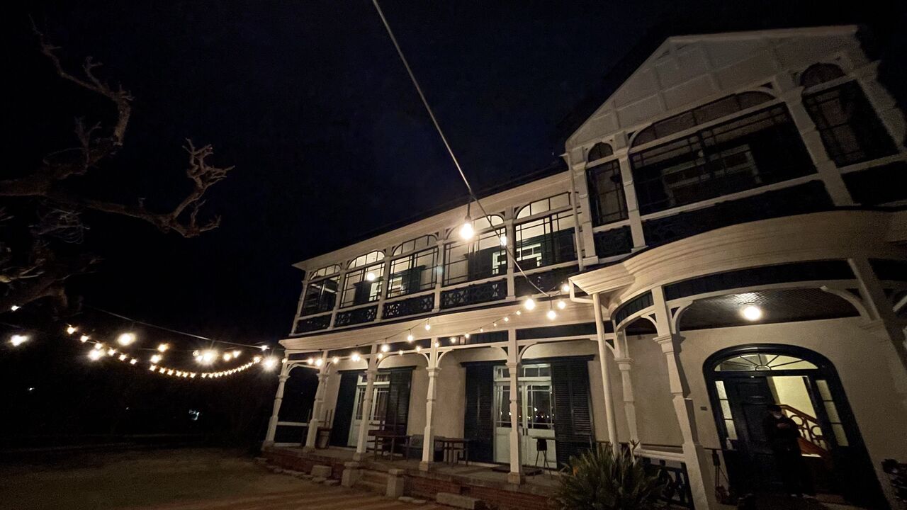 神戸の海が見えてきて俄然テンションがあがる。旧グッゲンハイム邸は2019年に下見に訪れたことがあったんだけど、その時は夜だったから印象が全然違った。海、線路、山、洋館、素晴らしいシチュエーション。ここでライブがやりたいという願いも叶ってしまう。加古川からチャッツワース家族がすでに到着していて、会場準備が進む。今回はシカゴキカク早田くんにもイベント制作のお手伝いをいただいた。線路を越えて荷物を運ばないといけないという心配事も難なくみんなで解決。この日の音響はチャッツワースでのGOMES THE HITMAN公演も担当してくれた真田さん。時間をかけて丁寧にセッティングしてくださった。僕は近隣を散歩したり2階から海を眺めたり。