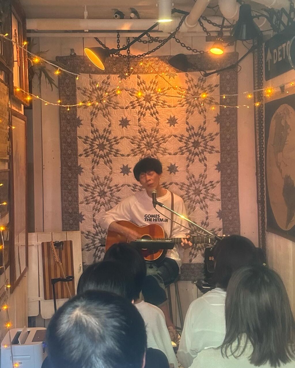 今回のライブはカバー多め。今年の元日に映画「PERFECT DAYS」を観た話から“サテライト”コーナーとしてルー・リード「Satellite of Love」、「milk moon canyon」「サテライト」。久しぶりに歌った「milk moon canyon」が自分の心に響いた。フィッシュマンズカバー「Weather Report」、“春なのに25度を超えて”どころかもっと暑くなった。続けて泳げない魚が登場する「月あかりのナイトスイミング」こうやって言葉が繋がってく。今回のチャレンジは「夜の科学」。みんな眠くならなかったか心配。僕は気持ちよかったです。