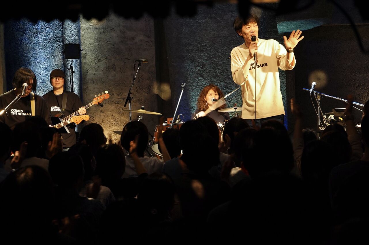 アカペラのイントロダクションから「baby driver」「毎日のポートフォリオ」とアルバムの曲順通りのオープニング。「夢の終わりまで」はタカタタイスケプロデュースによるシングルバージョンで演奏。“やりすぎた”からお蔵入りになったというのはネタというかお決まりのジョークだけれど、演奏してみるととてもステージ映えする。あくまでもアルバムの全体像を考えたうえでの決断、タイちゃんは良い仕事をしたと感謝している。「魔法があれば」も彼が魔法をかけなかったらこんなカラフルにはなっていない。「night and day」も現在位置での等身大GOMES THE HITMANポップスだと感じる。「memoria」がもともと「maman」という仮タイトルだった話はどこかでしたことがあったかな。母親がいなくなることを想像して作った歌だった。いつかまた逢えないかな、ほんの少しすれ違うくらいでいいから。